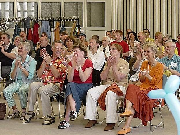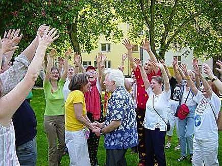 Unter diesem Motto hatte der Lachclub der Gute Laune (B)Engel am Sonntag, 1. Mai zur Feier des Weltlachtags 2005 nach Essen eingeladen. Auch Mitglieder unseres Clubs waren der Einladung gern gefolgt. Wie erhofft, trafen wir viele Lachgeschwister aus andern Clubs und lernten dazu noch viele “Neue” kennen. Der Leiter des Lachlcubs der Guten Laune (B)Engel, Christof Arnold, hatte den Tag mit sehr viel Liebe und Mühe vorbereitet - und so fühlten wir uns ausgesprochen wohl und hatten viel zu lachen, ob mit oder auch ohne Grund. Gern nehmen wir die Gelegenheit zum Anlass, dir, lieber Christof, für diesen gelungenen und schönen Tag von Herzen zu danken!