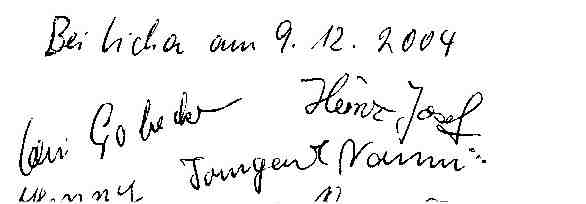 Am 9. Dezember 2004 trafen wir uns zum letzten Mal im alten Jahr zum gemeinsamen Lachen. Im Anschluss gingen wir mit 24 Personen zu Haus Licha, um gemeinsam zu essen und zu erzählen. Ursula und Brigitta trugen mit ihren gelungenen Beiträgen zu der guten Stimmung bei. Dafür sei ihnen auch an dieser Stelle herzlich gedankt.